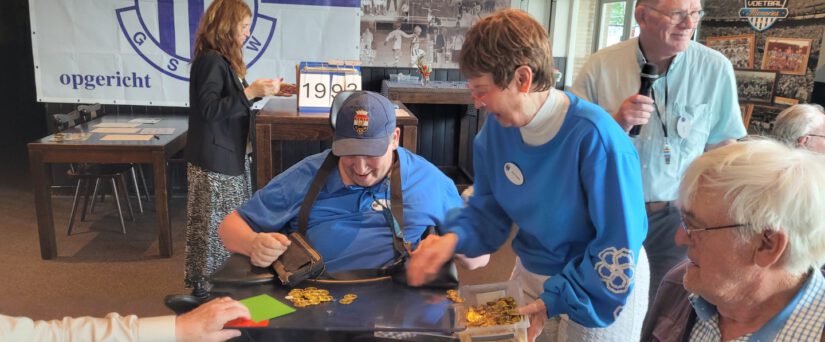 In de tweede helft hadden we een muziekquiz. De deelnemers moesten raden of het liedje voor of na het jaartal kwam dat het vorige liedje dat beluisterd was in de hitparade kwam. Groen was later, maar ook jonger dus. Dat schepte nog wat verwarring, maar vooral veel hilariteit. Er werd ook lekker mee gezongen. Muziek is en blijft altijd een verbindende factor, vaak vergezeld met mooie herinneringen. Uiteindelijk bleek Jaap-Kees de winnaar! Gefeliciteerd!